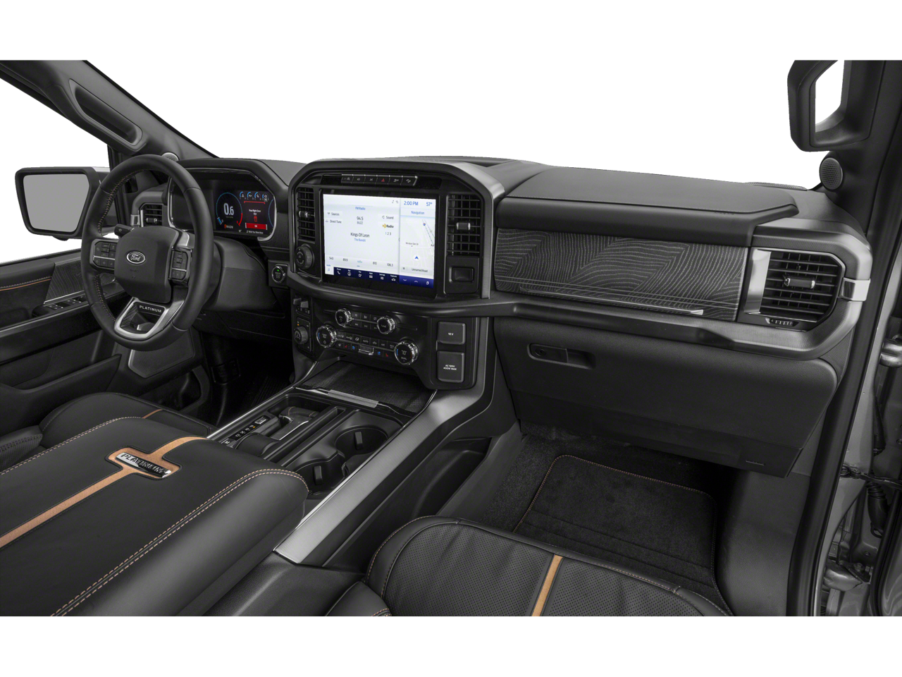 EQUIPMENT GROUP 701A HIGH Ford Co-Pilot360 Active 2.0, forward sensing system, BlueCruise, Active Park Assist 2.0, Radio: B&O Unleashed Sound System by Bang & Olufsen, HD Radio and 18 speakers including subwoofer, Bed Utility Package, BoxLink, 4 premium locking cleats, LED Box Lighting, Tailgate Step w/Tailgate Work Surface, Power Tailgate, Tow Technology Package, smart trailer tow connector and BLIS w/trailer tow coverage where BLIS is available, 360 Degree Camera, trailer reverse guidance, Pro Trailer Backup Assist, TWIN PANEL MOONROOF, ENGINE: 3.5L V6 ECOBOOST, TRANSMISSION: ELECTRONIC 10-SPEED AUTOMATIC selectable drive modes: normal, ECO, sport, tow/haul, slippery, deep snow/sand and mud/rut (STD). Ford Platinum with Star White Metallic Tri-Coat exterior and Carmelo interior features a V6 Cylinder Engine with 400 HP at 6000 RPM*.