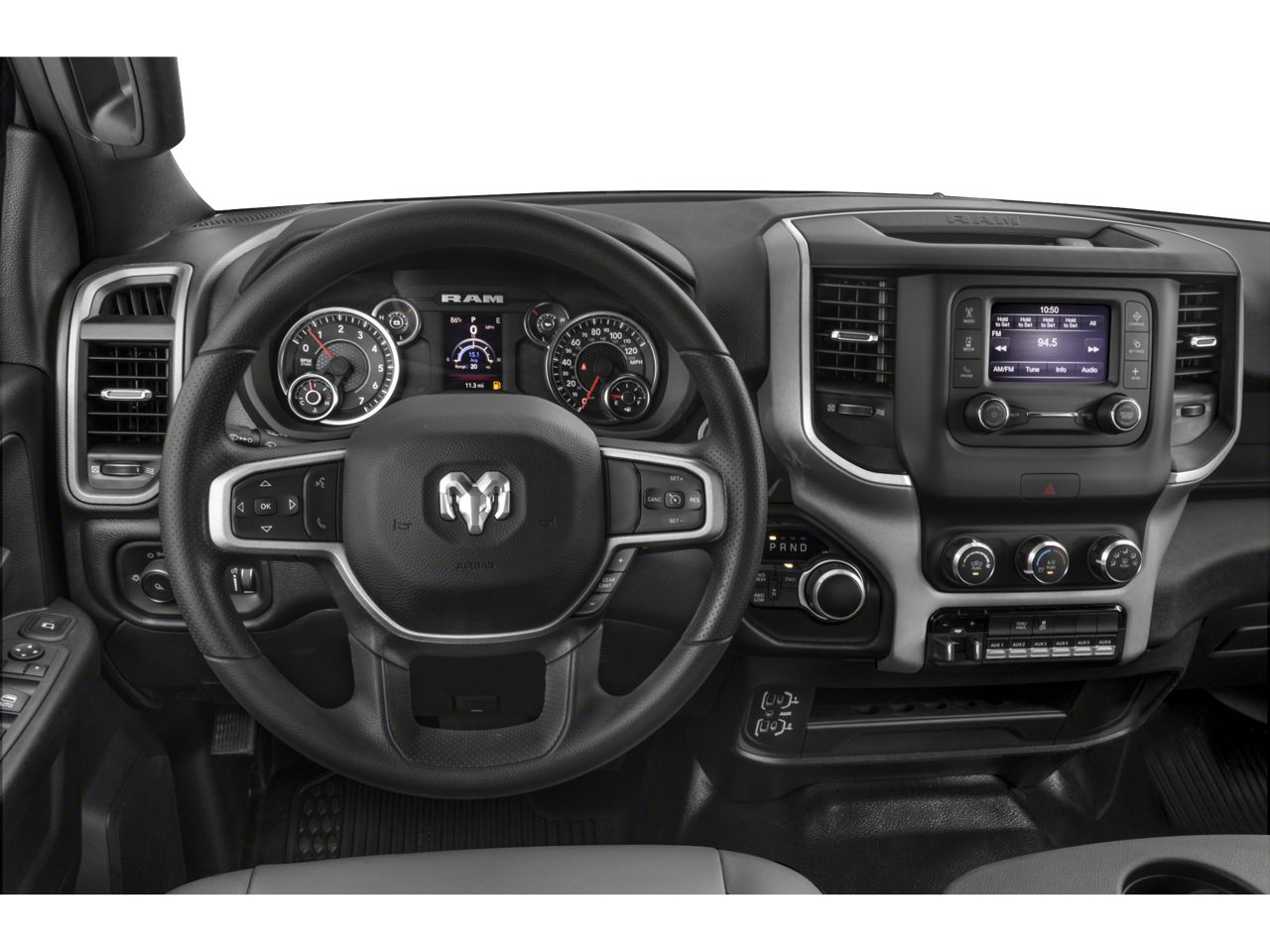 Child Safety Locks, Electronic Stability Control, Brake Assist, 4-Wheel ABS, Tire Pressure Monitoring System, 4-Wheel Disc Brakes Safety equipment includes Child Safety Locks Ram Tradesman with Bright White Clearcoat exterior and Black interior features a Straight 6 Cylinder Engine with 410 HP at 5600 RPM*.
