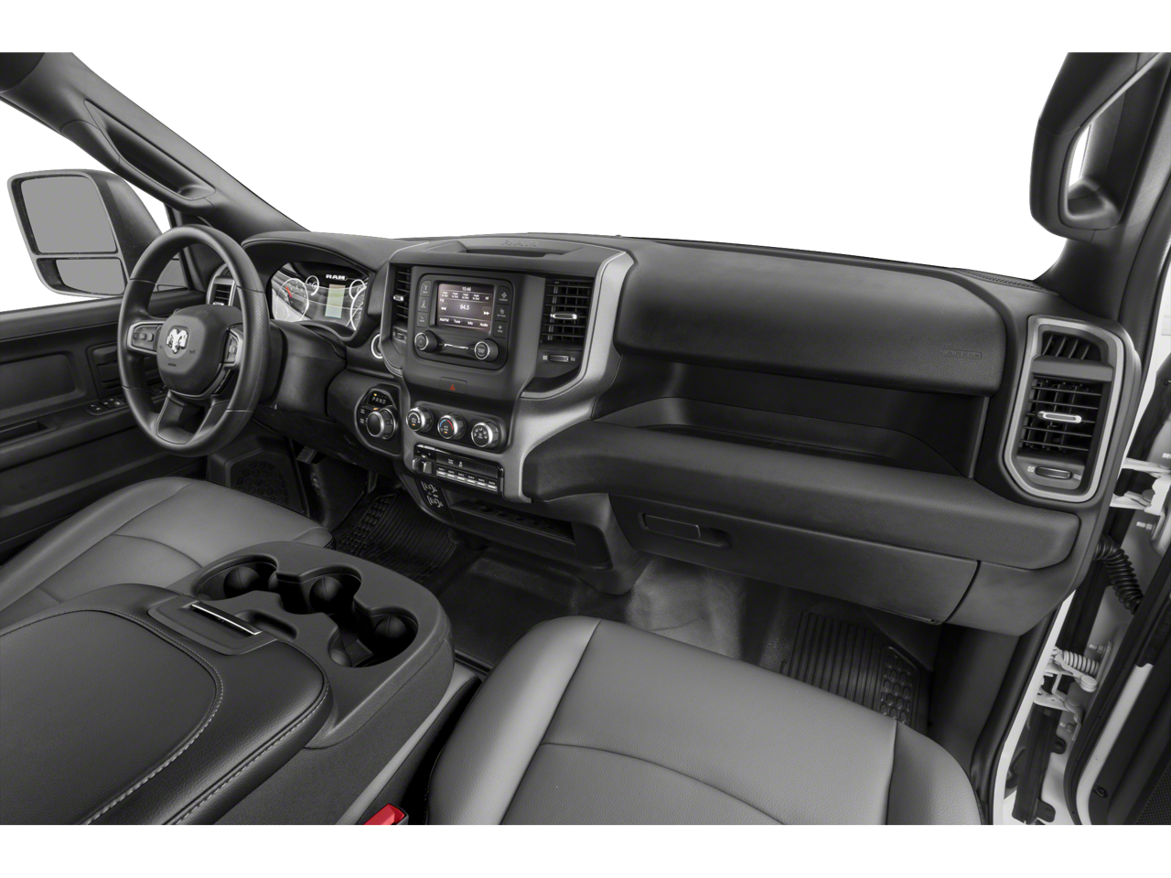 ENGINE: 6.7L I6 CUMMINS HO TURBO DIESEL Selective Catalytic Reduction (Urea), Dual 730 Amp Maintenance Free Batteries, Cummins Turbo Diesel Badge, Heavy Duty Engine Cooling, Current Generation Engine Controller, Diesel Exhaust Brake, Supplemental Heater, Capless Fuel Fill w/o Discriminator, GVWR: 12,300 lbs, DUAL REAR WHEELS Clearance Lamps, Tires: LT235/80R17E BSW AS, 17 Steel Spare Wheel, Box & Rear Fender Clearance Lamps, 6000# Front Axle w/Hub Ext, Wheels: 17 x 6.0 Steel Argent, GVWR: 14,000 lbs, Rear Wheelhouse Liners, RADIO: UCONNECT 5 W/8.4 DISPLAY Google Android Auto®, SiriusXM Radio Service, Selectable Tire Fill Alert, Bluetooth® Handsfree Phone & Audio, SiriusXM Satellite Radio, Integrated Center Stack Radio, For More Info, Call 800-643-2112, Connectivity - US/Canada, 4G LTE Wi-Fi Hot Spot, All Radio Equipped Vehicles, All R1 Low Radios, 8.4 Touchscreen Display, Apple CarPlay®, BLACK, CLOTH 40/20/40 BENCH SEAT, TRADESMAN LEVEL 2 EQUIPMENT GROUP Rear Window Defroster, Power Heat Fold Telescopic Mirrors, Rear Power Sliding Window, Exterior Mirrors w/Supplemental Signals, Exterior Mirrors Courtesy Lamps, Exterior Mirrors w/Heating Element, Mirror Running Lights, Power Adjust Mirrors, Carpet Floor Covering, Front & Rear Floor Mats, Power-Adjustable Convex Aux Mirrors, TRANSMISSION: 6-SPEED AUTOMATIC AISIN AS69RC HD Urethane Shift Control, Transmission Oil Cooler.