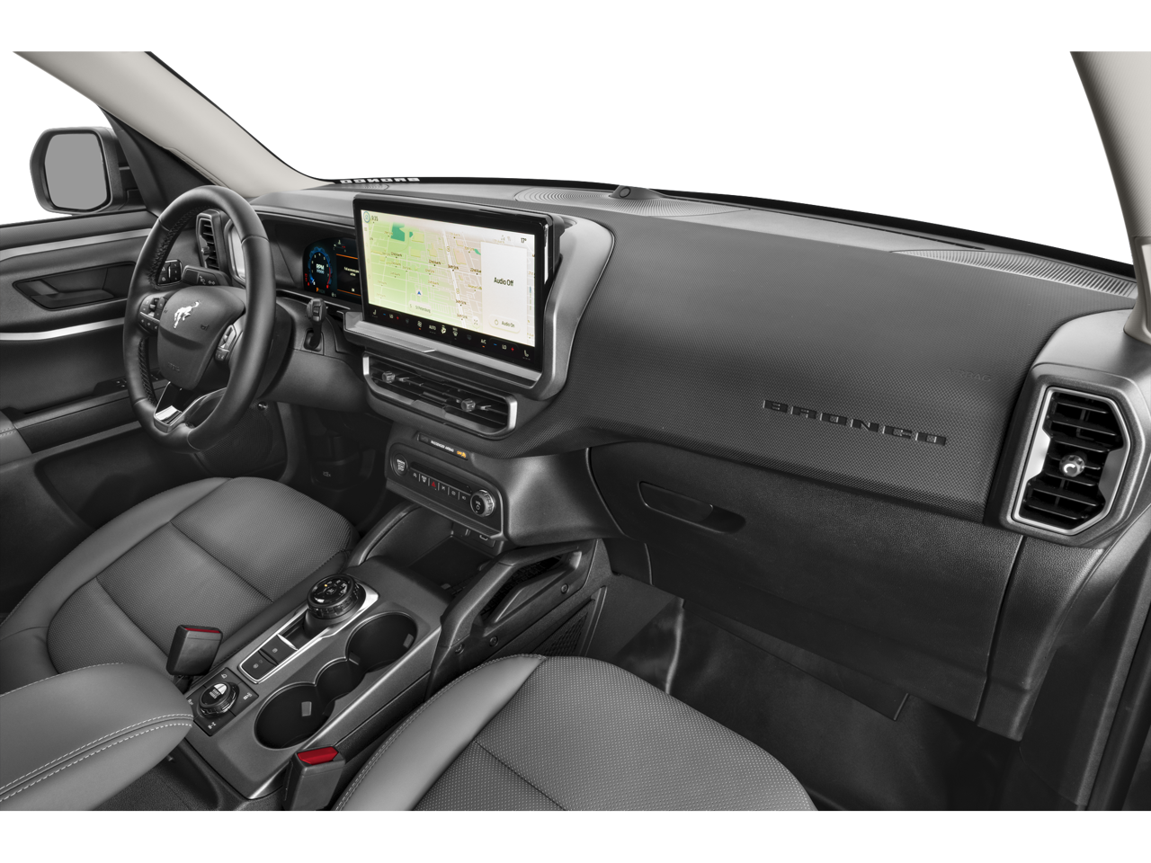 POWER MOONROOF, BADLANDS TECH PACKAGE noise reduction module, B&O Sound System by Bang & Olufsen, 10 speakers and subwoofer, Connected Navigation, pinch-to-zoom capability, live traffic, predictive destinations and route guidance and one box search, Navigation services require SYNC 4 and Bronco Trail App (optional on select vehicles), complimentary connect service and the FordPass app (see FordPass terms for details), Customer receives a complimentary of navigation services when an eligible vehicle is added to a members FordPass account, Trial period begins on the new vehicle warranty start date, At the end of the complimentary period, navigation service will terminate, Connected services and features depend on compatible AT&T network availability, Evolving.